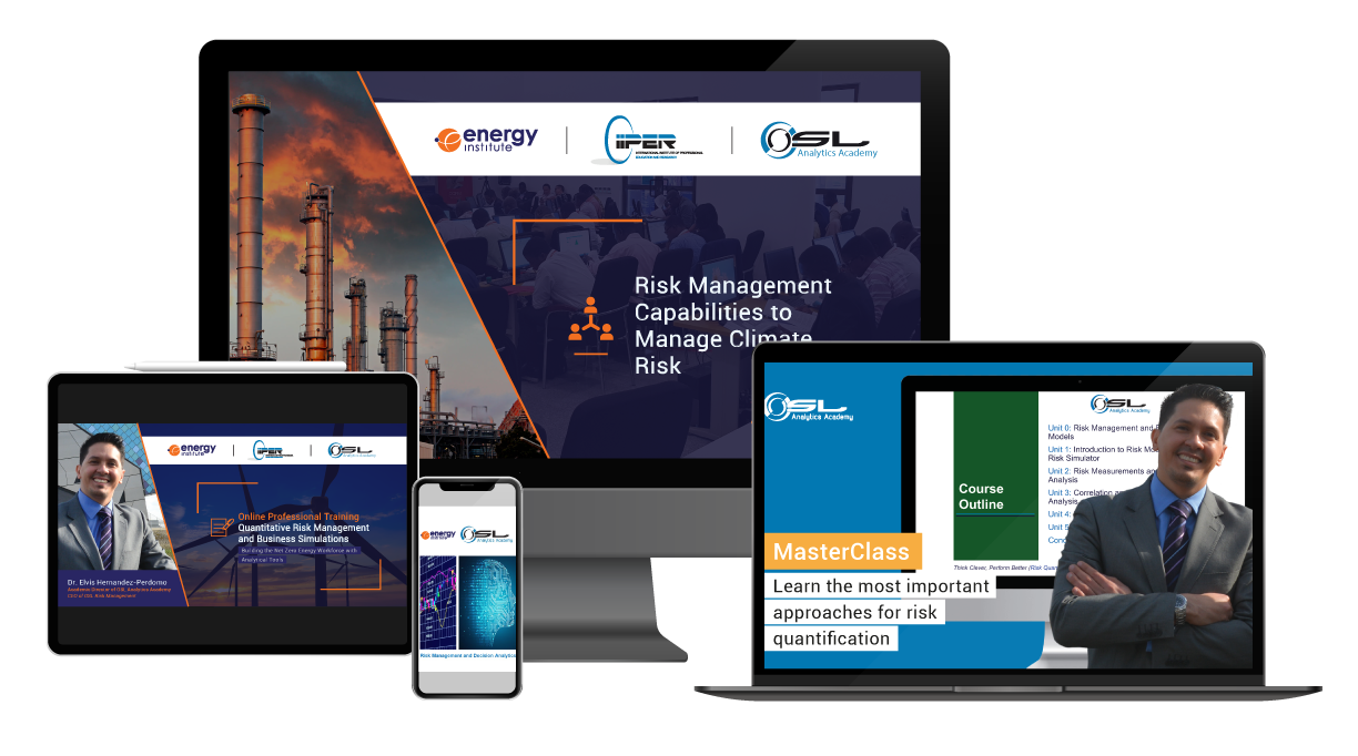 “Fundamentals of Quantitative Risk Quantification and Business Simulations”, Applications for the Energy Industry, is an accelerated 12-CPD-hour online training course prepares professionals to enter and advance in the field of Risk Management and Decision Analysis using a Quantitative Approach